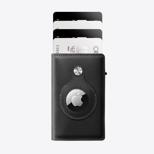 Luxury Airtag Wallet - Card Holder - Leather - Black